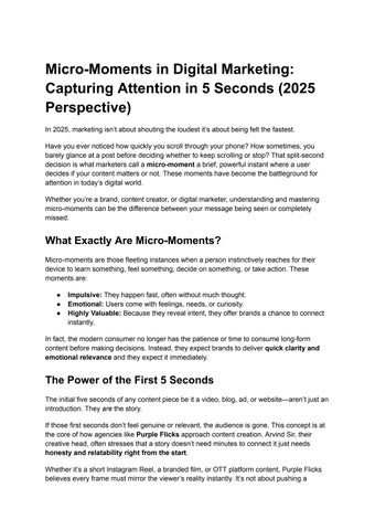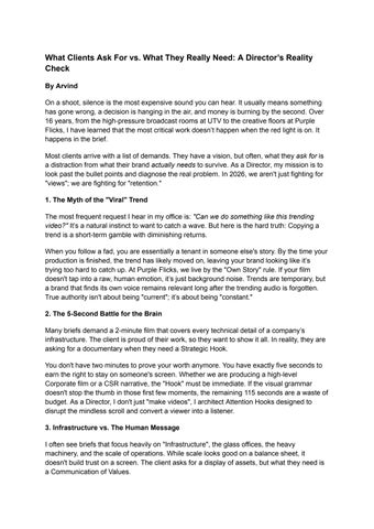 Purple Flicks is a Mumbai-based production house. With more than 14 years of experience, we specialize in creating ad films, corporate videos, brand films, documentaries, OTT series, micro-dramas, and powerful social impact content. We are known for cinematic storytelling, strong visuals, and work that truly connects & serves clients across India and internationally.